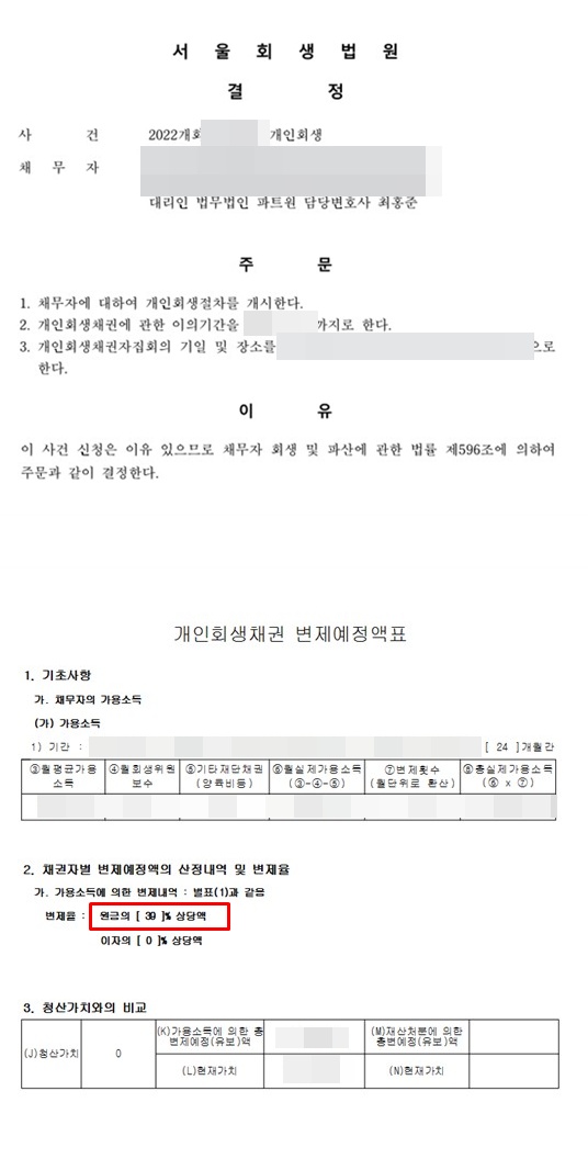 해당 사건은 서울회생법원에 신청되었던 개인회생 사건으로, 신청하신 의뢰인 분은 20대 여성분이셨습니다.