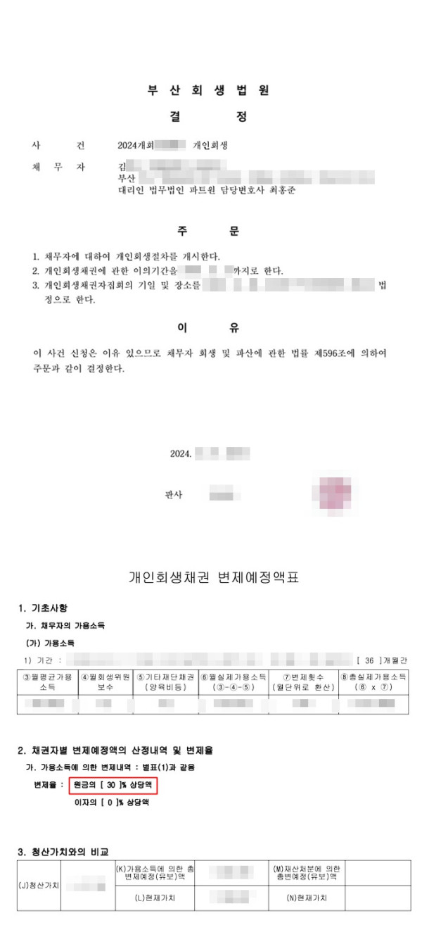 이후 2년 동안 성실히 직장생활을 하며 어떻게든 채무를 변제하려 애썼지만, 이자 부담으로 점점 더 변제가 어려워졌고, 결국 생계 유지마저 위협을 받게 되자 결국 개인회생 절차를 신청하기에 이르렀습니다.