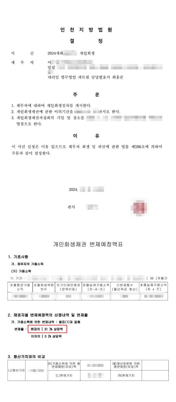 이 사건은 인천지방법원에 신청되었던 개인회생 사건으로, 의뢰하신 신청인 분은 40대 여성분이셨습니다.