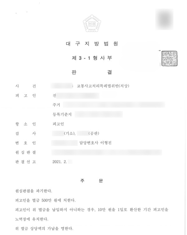 피해자의 상해정도가 중하여 실형을 받을 뻔 하였지만 법무법인 파트원의 조력을 받아 벌금형으로 마무리할 수 있었습니다.