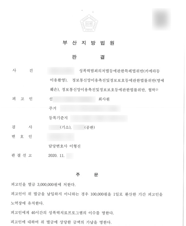 의뢰인은 성관계 중 몰래 피해자와의 성관계 장면을 촬영하여 처벌 받을 뻔 했지만 조속히 법무법인 파트원의 조력을 받아 벌금형으로 사건을 종결할 수 있었습니다.
